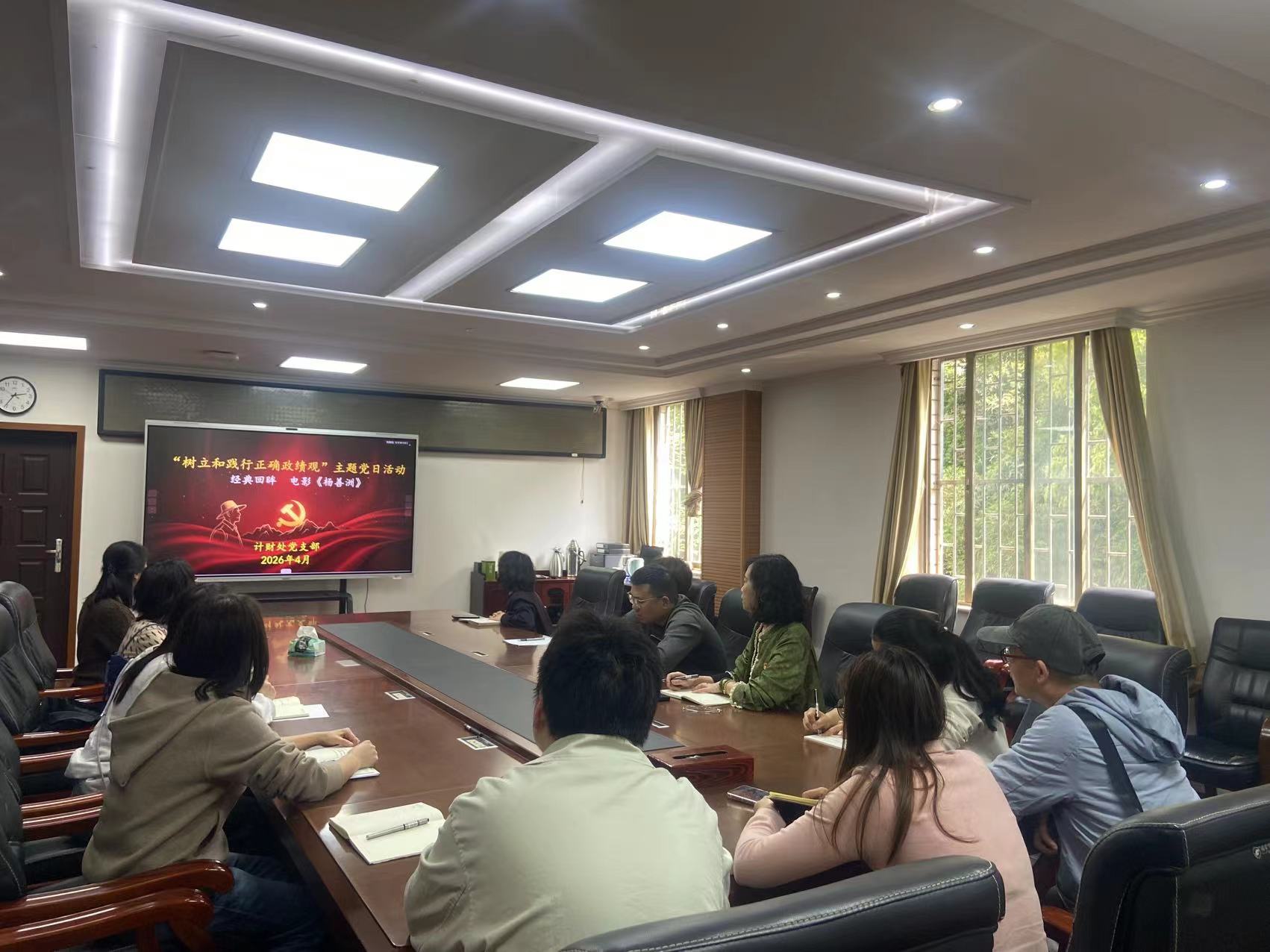 为深入学习贯彻落实“树立和践行正确政绩观”的重要论述,充分发挥先进典型的教育引领作用,计财处党支部4月17日开展了以“回眸经典电影《杨善洲》”为主题的党日活动。通过理论学习与影视教学相结合的方式,有效引导了全体党员深刻领悟“政绩为谁而树、树什么样的政绩、靠什么树政绩”的根本问题,切实做到知行合一。党员们纷纷表示,真正的政绩,既要有看得见的显绩,更要有需要久久为功的潜绩;靠实干打造政绩,靠锤炼锻造作风,以“功成不必在我,功成必定有我”的精神实干前行。